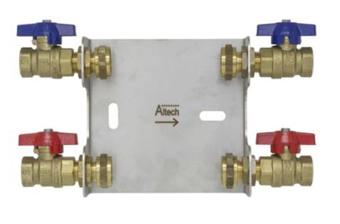 This product is made of brass, stainless steel and PE and is installed on the wall. Altech water meter console R15 and G15 are intended to relief stresses and vibrations in the pipelines in connection with the meter change.