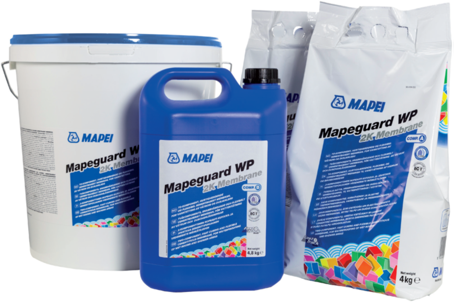 Mapeguard WP 2K Membrane (A+B) is a two-component, cementitious membrane with selected fine-grained aggregates, special additives and synthetic polymers in water dispersion. It is fast curing and flexible, for waterproofing wet rooms and shower facilities.
