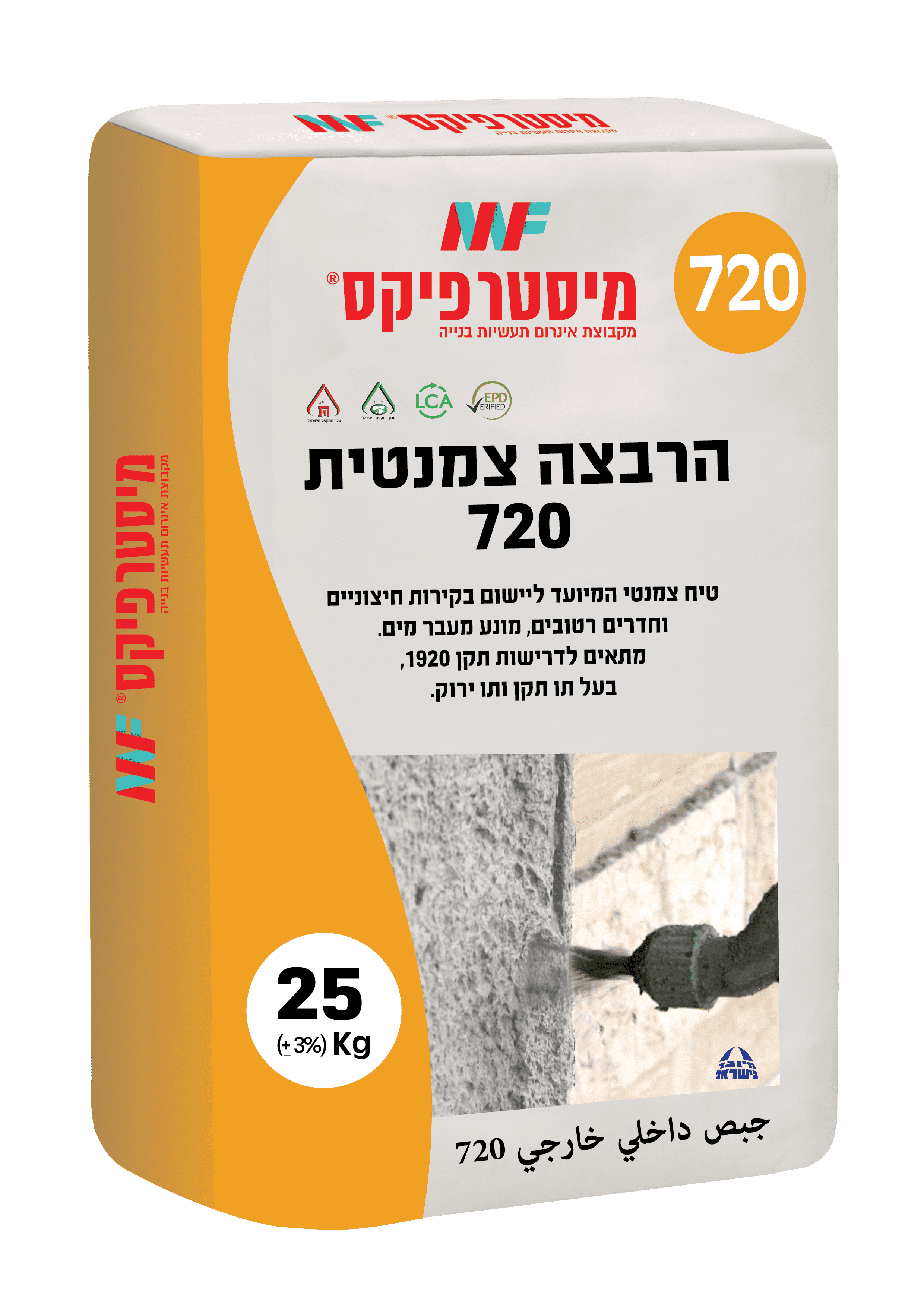 - 720 – Cement plaster intended for application on external walls and wet rooms, prevents water passage. It can be use as substrate for rigid coverings and use in a maritime and normal environment.