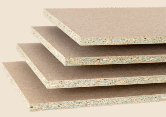 Particle board (furniture production) produced by pressing wood chips reduced to a required fraction flake, then mixed with the required chemical components (resin, hardener, wax, formaldehyde scavenger). In particle board are different layers. After pressing process, particle boards are sanded and cut to size what is needed. Furniture particle boards are produced according EN312:210 standard, IOS-MAT-0162.