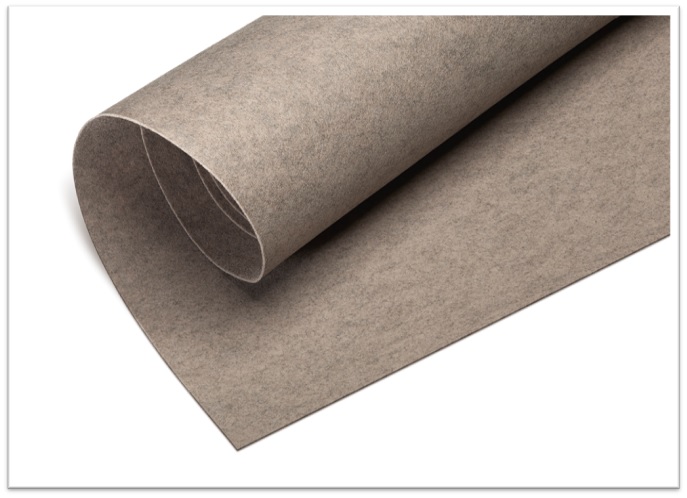 Low reaction to fire and high abrasion resistance decorative synthetic felts in plain and mottled colours with a distinctive surface that is pleasant to the touch