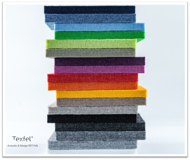 High-density acoustic panel 12 mm thickness, made of 60% post-consumer recycled PET.