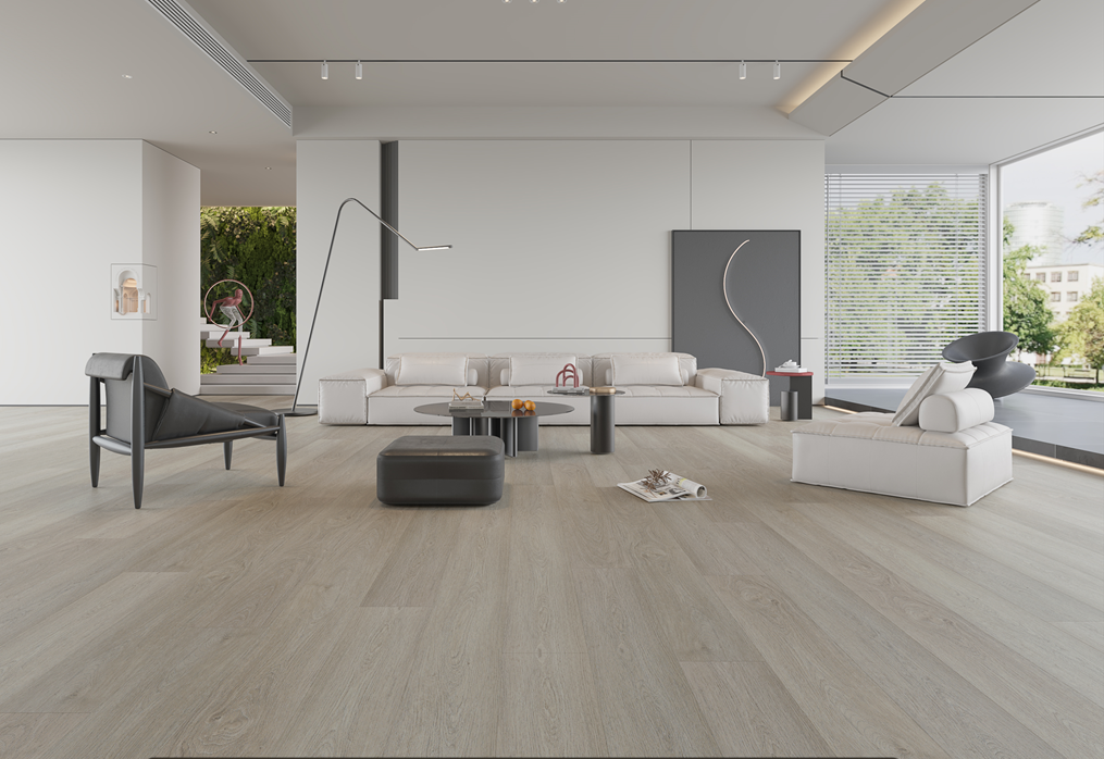 Vinly flooring product is made primarily from polyvinyl chloride (PVC), calcium carbonate (limestone), plasticizers, additives (such as pigments, stabilizers, lubricants, foaming agent, etc.). It is composed of one clear PVC embossed wear layer with a final UV coating, printing film layer for décor, substrate layer for structural strength and stability, and may include a backing (such as IXPE or Cork) to improve acoustic performance and increase comfort underfoot. The product is waterproof, easy to install and maintain.