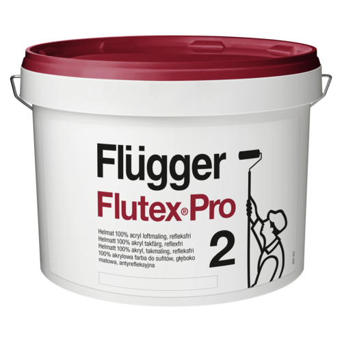 Flügger Flutex Pro 2 is a flat non-reflecting 100% acrylic ceiling paint, with extra hiding power. It is recommended for premises with high functional and special aesthetic requirements that are exposed to some dirt.