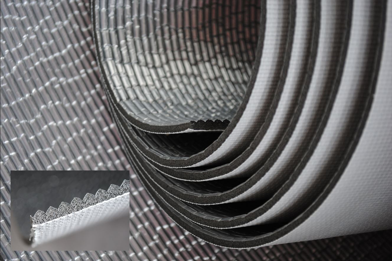 The Carfoam®/Zetatunel sheet is comprised of multiple layers. The exposed outer layer provides mechanical resistance; the middle layer consists of closed-cell foam that provides the desired level of thermal insulation; and the inner layer provides mechanical resistance, drainage, and a weldable surface.
