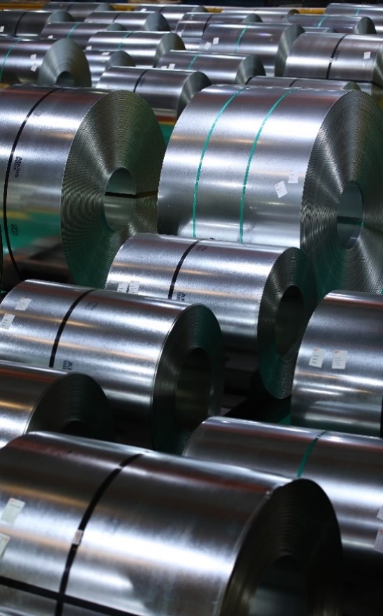 AM/NS India manufactures steel colour coated sheets (PPGI) and Galvanized Iron products in a state-of-the-art 0.4 MTPA facility. It produces high-quality colour coated sheets that add aesthetic beauty to the strength of steel. Galvanizing line producess galvanized Iron products, which undergoes colour coating process to produce pre-painted galvanized iron products in sizes upto 3 mm thickness and 1450 mm width. They are produced in Hazira, Pune, Gandhidham, and Khopoli facilities. Pre-painted galvanized sheets (PPGI) have been extensively used across a wide range of prestigious projects across the world. Galvanized Iron has General structural, CQ -Commercial quality and EDD application grades.