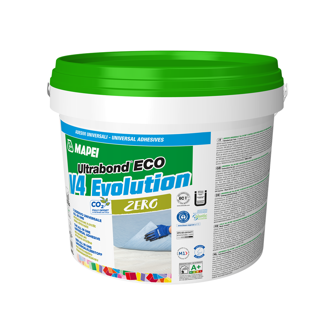 Ultrabond Eco V4 Evolution Zero is a synthetic polymer-based adhesive in water dispersion, formulated in a read to use light beige paste.