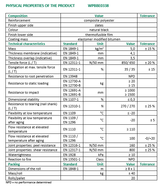 Membrane composed of elastomer modified bitumen with fire retardant additives and a composite polyester reinforcement. Used as an upper layer within a single or multi layer waterproofing system where fire retardant properties are required. The upper surface is finished with slates and the overlap is protected by a thermofusible film. The lower surface is protected by a thermofusible film.