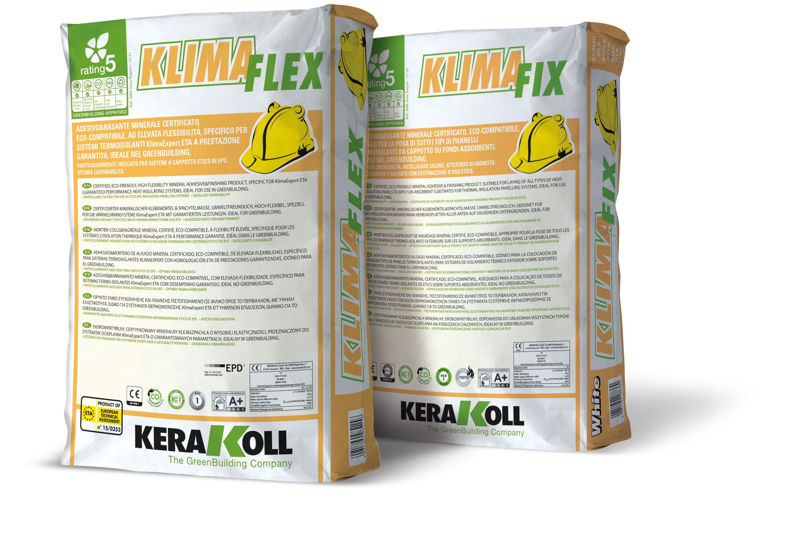 Klima Flex is high performance, mineral Adhesive & Finishing product, specific for ETICS Klima Expert ETA guaranteed performance insulation panelling systems.