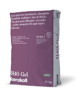 H40 gel is highly flexible multi-purpose structural gel-adhesive, thixotropic & fluid. Suitable for porcelain stoneware, ceramic, and natural stone of all types and sizes.