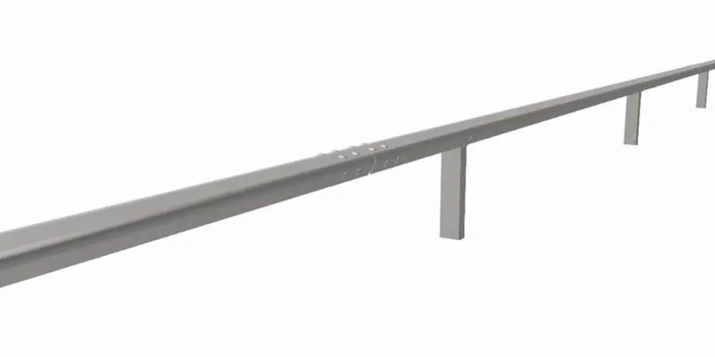 Safety barrier with M profile fixed at C110 post installed in steel foundation.