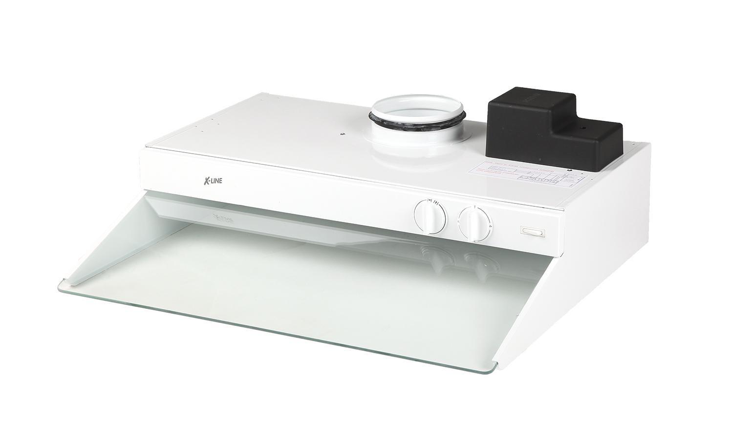 Vallox X-Line cooker hoods and house extract fans have a fixed glass front panel and are designed to be integrated with the kitchen cabinets. All Vallox X-Line products have a large metal grease filter that can be washed in a dishwasher. An efficient LED light that illuminates the cooker top efficiently is included in the standard delivery of Vallox X-Line cooker hoods and cooker fans. House extract fans can be turned into cooker fans by plugging the extract air ducts. smell absorption capacity. At an airflow of 75 l/s, the smell absorption capacity of Vallox X-Line cooker hoods is close to 85 per cent.