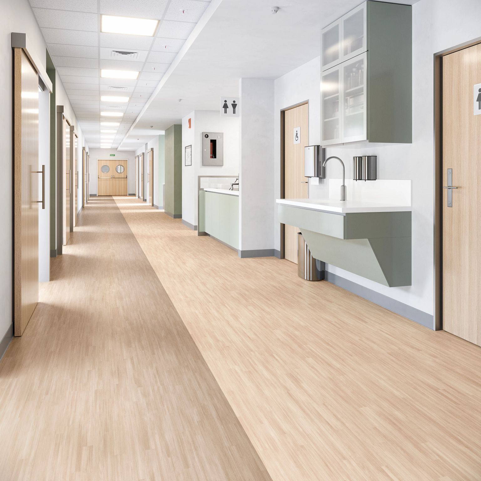 Mannington's Heterogeneous Resilient Sheets offers a durable and cost-effective solution, ideal for demanding environments such as healthcare facilities. Available in a variety of visuals—including wood, stone, abstract, and textile textures—it combines aesthetics with functionality. Engineered for healthcare spaces, its Quantum Guard® technology ensures superior abrasion and stain resistance, simplifying maintenance while enhancing hygiene. With a 2,000-psi rating and seam-minimizing widths of 6', 9', and 12', it delivers durability and cost efficiency. Additionally, its ortho-phthalate and PFAS-free construction supports sustainability.