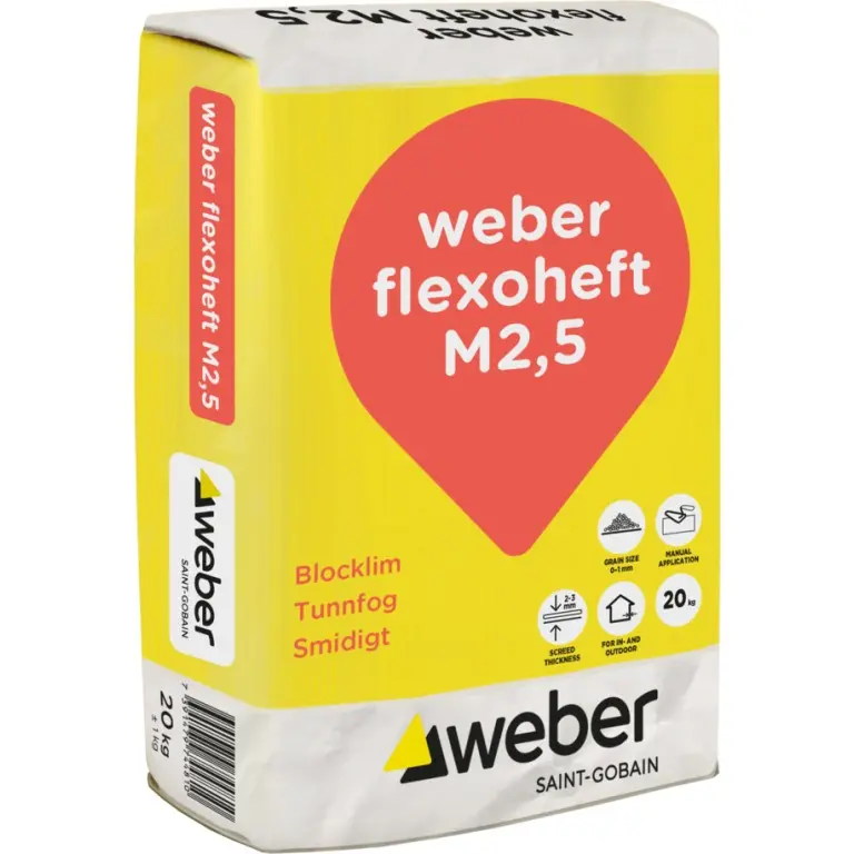 weber flexoheft M2,5 is used for the Leca Block system. The mortar is applied to the masonry using a mason's box. It is also possible to apply with a trowel or scoop. Do not use when the temperature is at risk of falling below 5 °C.