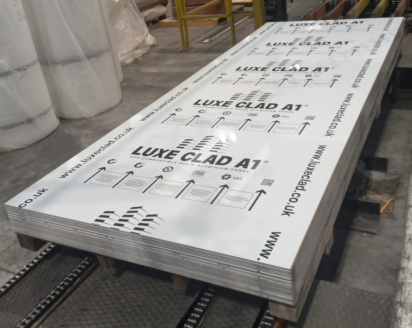 The product is available in a range of standard colours and gloss levels of 5 to 85 units. A UV resistant protective polyethylene film is applied to the top surface of the product, printed with the Luxe Clad A1® logo or without film by arrangement.