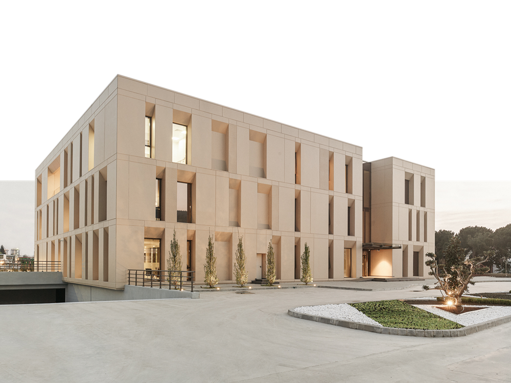 Glass Fiber Reinforced Concrete is an advanced composite material that integrates high-quality Portland cement, pozzolanic industrial byproducts as cement replacements, and carefully optimized silica sand with omnidirectionally woven alkali-resistant glass fiber reinforcement. This innovative combination allows for the production of thin and lightweight panels exhibiting exceptional physical properties. The incorporation of glass fiber eliminates the need for reinforcement, enabling the manufacture of facades as modular pieces that are both thin and light, facilitating efficient installation and finishing processes.