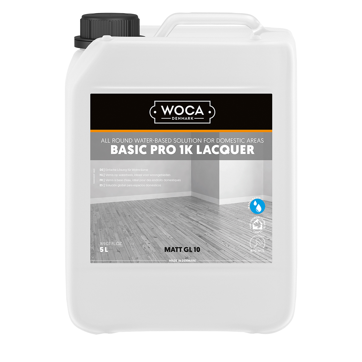 Basic Pro Lacquer is a low-odor, water-based floor lacquer that delivers a durable, resistant finish. Its smooth flow and fast drying make it ideal for normal wear.