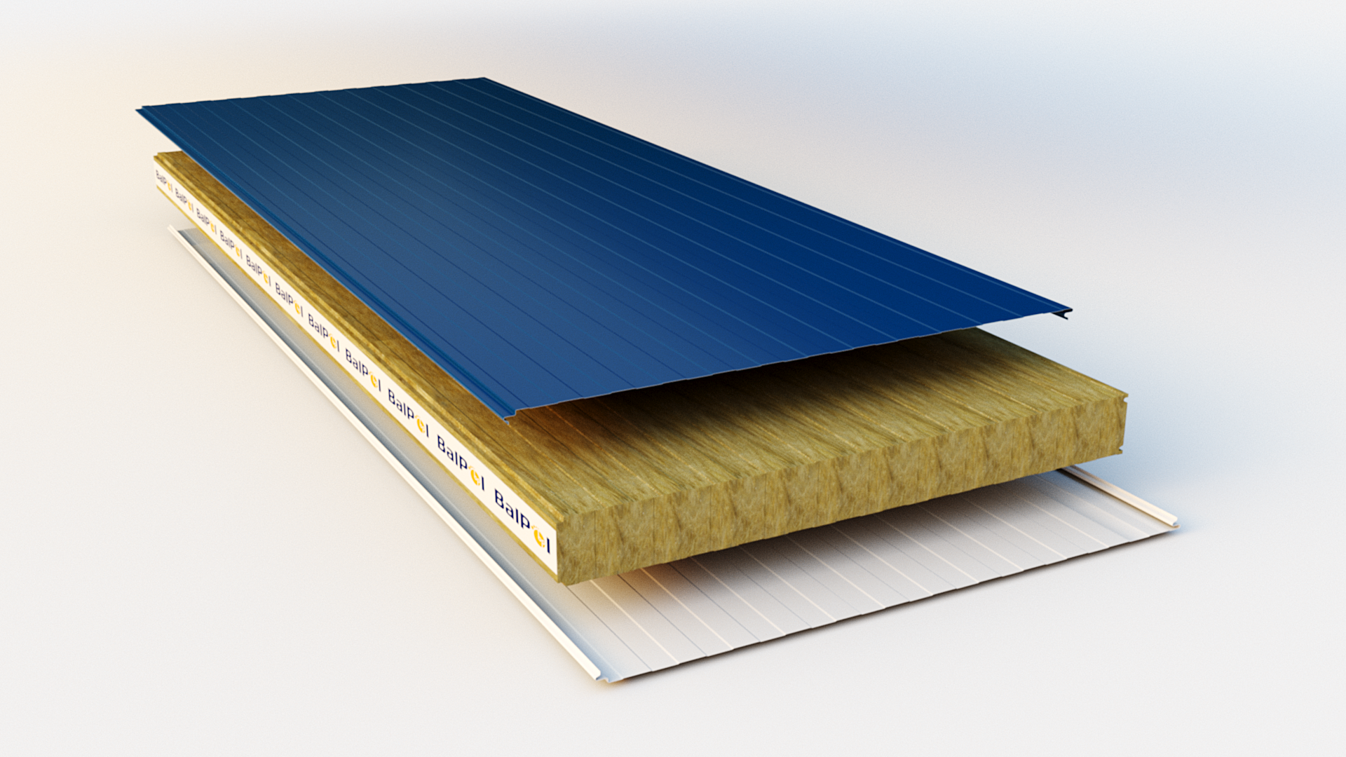 Sandwich panel is a building product consisting of two metal faces positioned on either side of a core that is a thermally insulating material, which is firmly bonded to both faces so that the three components act compositely when under load. One or both metal faces may be flat, lightly profiled or fully profiled. Metal faces are protected against corrosion by galvanization with zinc layer and paint. The core material is consisting of mineral wool lamellas. Wall panels with mineral wool (MW) insulation core are designated for applications with high fire resistance requirements (fire walls, fire compartments, partitions, etc.). MW wall panels may also be used for projects with higher sound insulation requirements. Sandwich panels are widely used for industrial and commercial buildings, logistic centres, sports arenas, warehouses, power plants and other structures that require to ensure the rapid pace of construction, high building’s resistance to external factors and high energy efficiency. Factory-made self-supporting sandwich panels are intended for discontinuous laying in the following applications: external walls and wall cladding; roofs and roof cladding; walls (including partitions) and ceilings within the building envelope.
