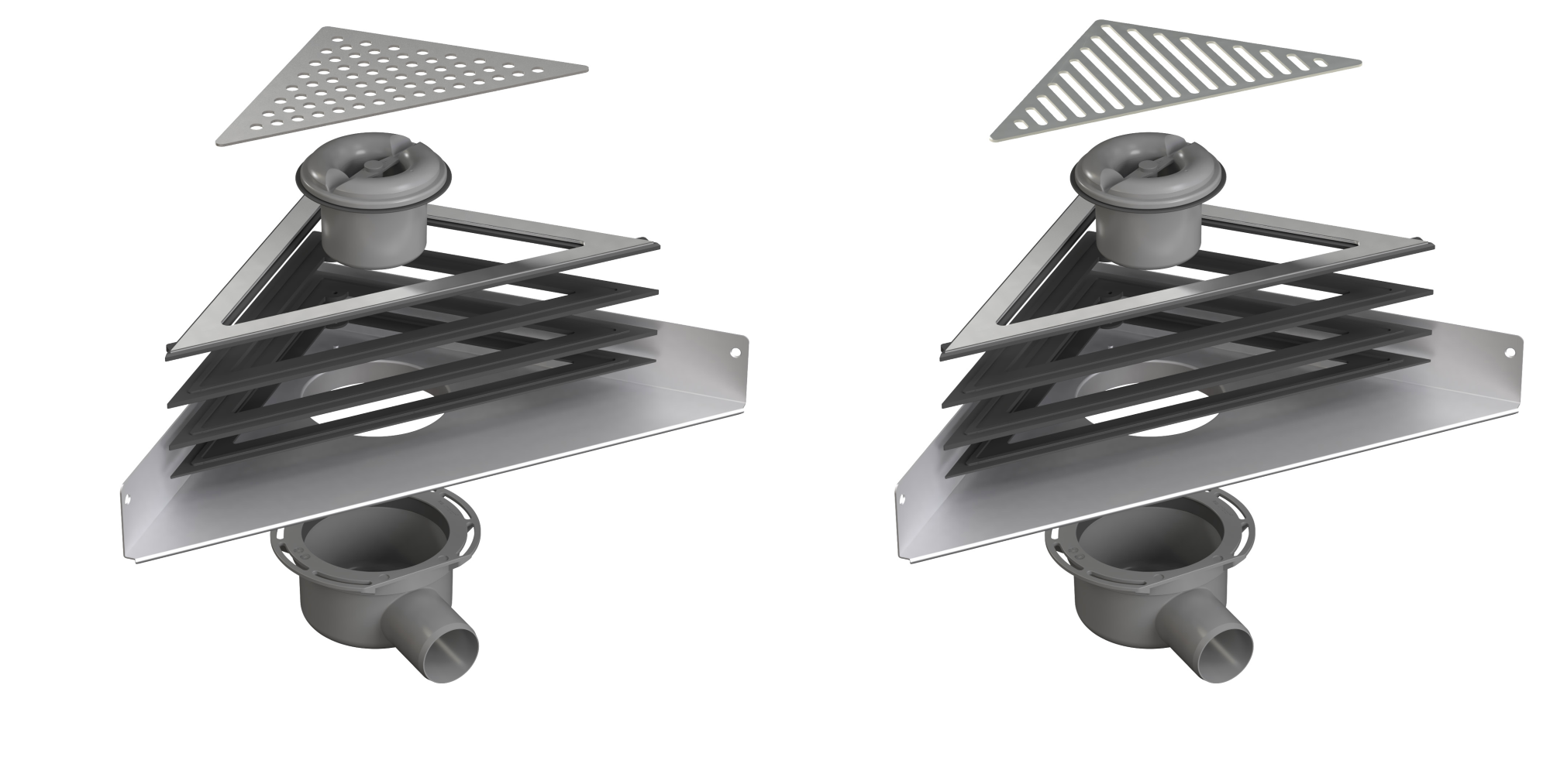 Corner Drain Complete - low building height (Drain unit, Outlet unit, Classicline Frame and grating)