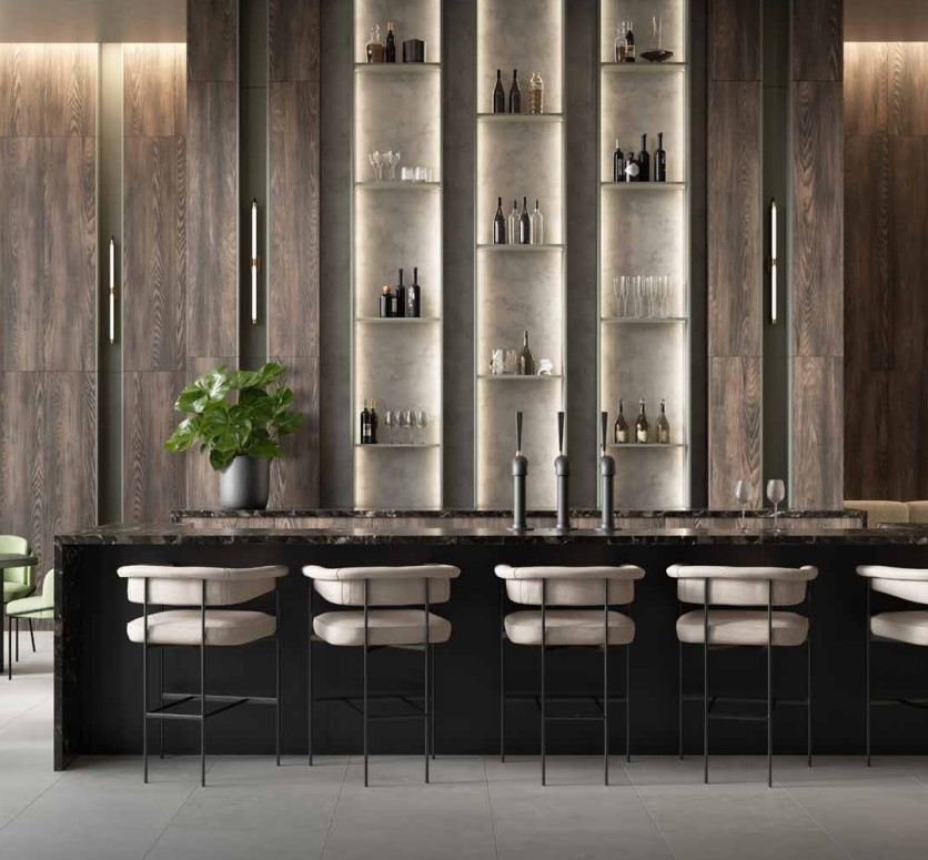 Composite elements from Kronospan GmbH can be used as decorative surface elements in commercial establishments and private households, for example: