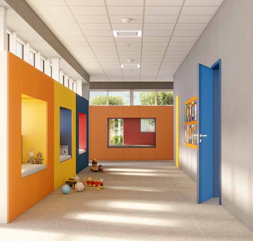 The panels (Birch Multiplex) from Kronospan GmbH can be used as decorative surface elements in commercial establishments and private households, for example:
