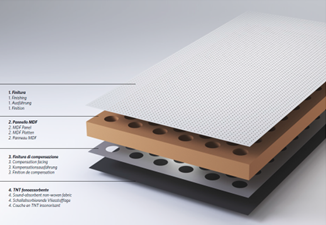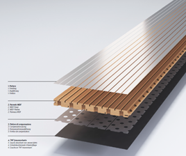 The EPD hereby refers to a range of sound absorbing panels of the families 4 Sound and 4Shape with same layup and materials but different shapes/ assembling (slats, panels, modules), surface finishing and appearance (microperfored, slatted, solid).