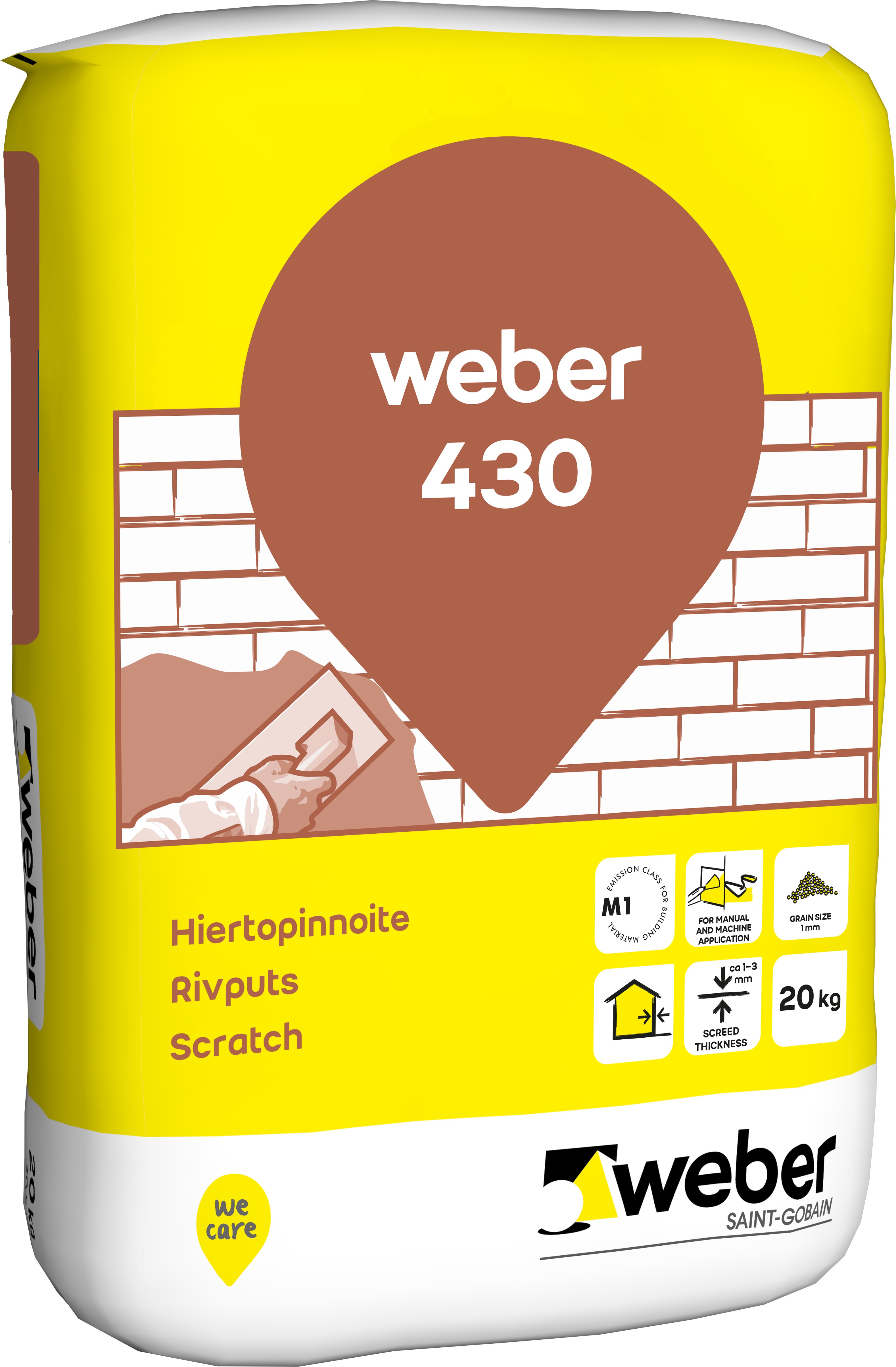 weber 430 Final Coat Mineral Render White T001 is sprayed, or hand applied white-colored render for finishing of facades.