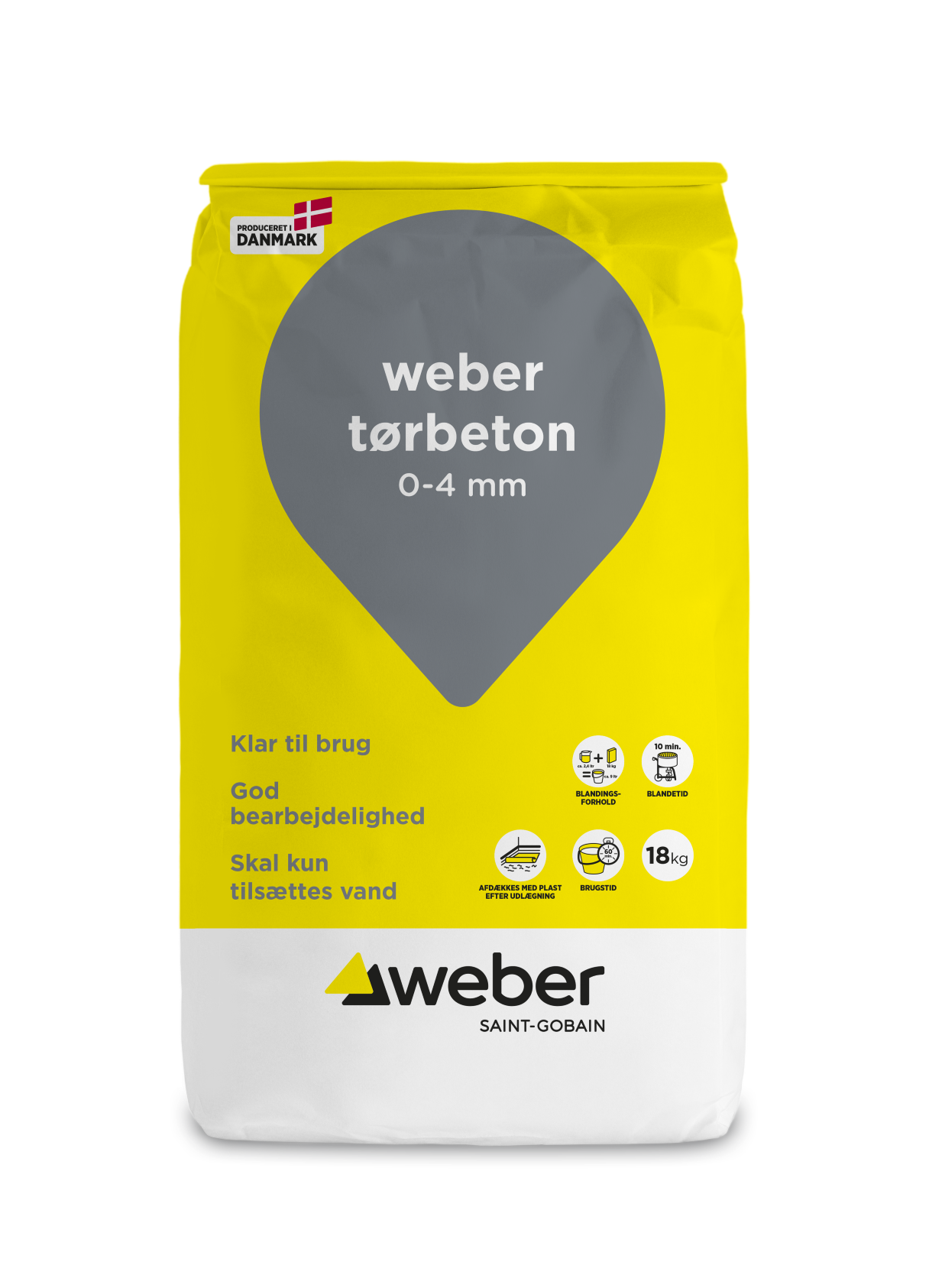 weber tørbeton 0-4 mm is used for plastering of foundations, as joining mortar for clinker, as well as for repair work on concrete surfaces in general.