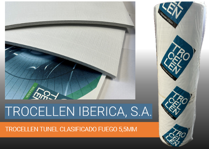 TROCELLEN® TUNEL CLASIFICADO FUEGO BIOBASADO 5,5 MM is a multilayer, lightweight material used as an exposed sheet for waterproofing tunnels and underground structures (road tunnels, railway tunnels, tunnels and subway stations, pedestrian tunnels, subway galleries in mining centers, etc.). Its mechanical and physical properties, with high mechanical resistance and low thermal conductivity, among others, make it ideal for conducting water leaks of the tunnel to the tunnel walls and for minimizing the risk of ice formation, especially in areas close to high mountain tunnel entrances. The installation of the sheet in the application is relatively simple and quick compared to other types of solutions on the market. It also has an adequate reaction to fire classification according to the European standard EN 13501-1, with an excellent Euroclass B, s1d0 classification, the best classification that a plastic or polymeric material can obtain according to this classification.