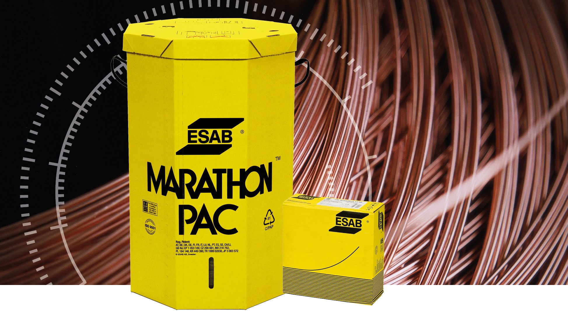Copper coated, not annealed, silicon-manganese alloyed solid wires for GMAW (gas metal arc welding) of all general structural and engineering unalloyed and low-alloyed carbon manganese steels. They are delivered on spools or in ESAB Marathon Pac and are mainly used in mechanized welding applications.