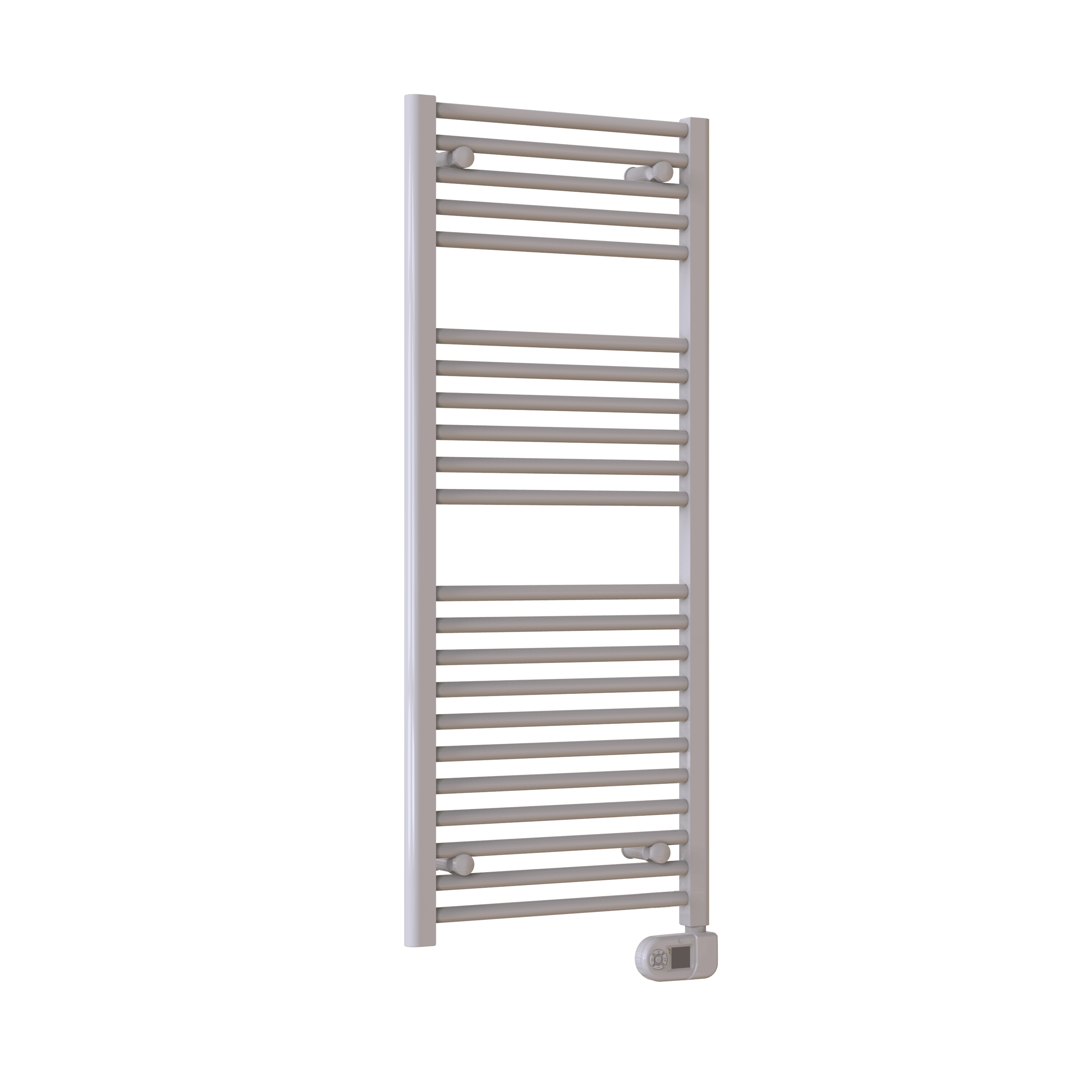 Electric towel warmer with bottom-mounted digital thermostat. Available in various sizes, colours and tubular compositions. Suitable for commercial and residential use.