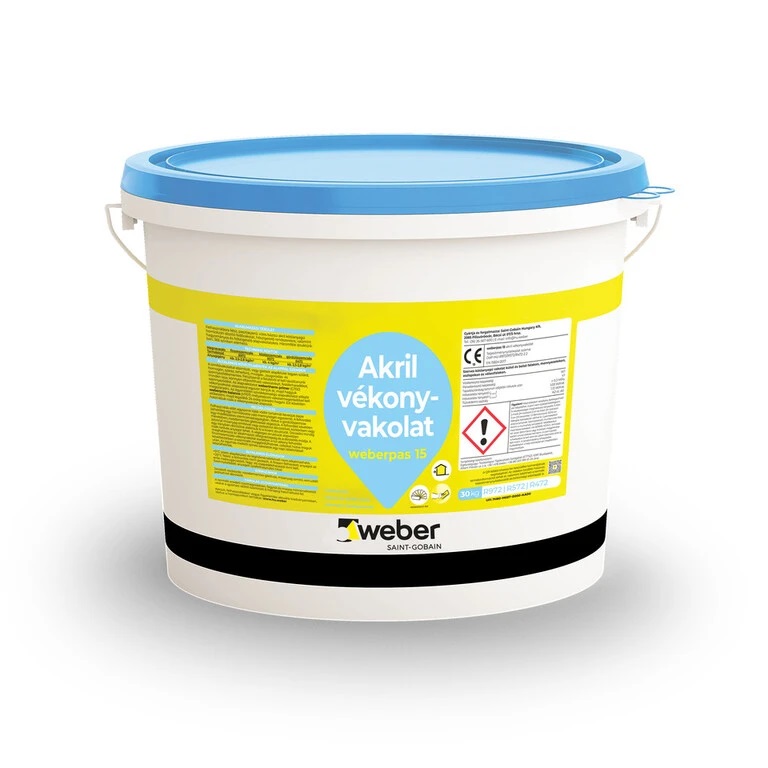 weberpass 15 is ready-to-use, paste-like, water-based acrylic binder facade decorative finishing plaster for thermal insulation systems and traditional and thermal insulation base plasters. Available in three structures, 365 colors. Product codes: fine-grained R972, medium-grained: R572, roller-grained R472