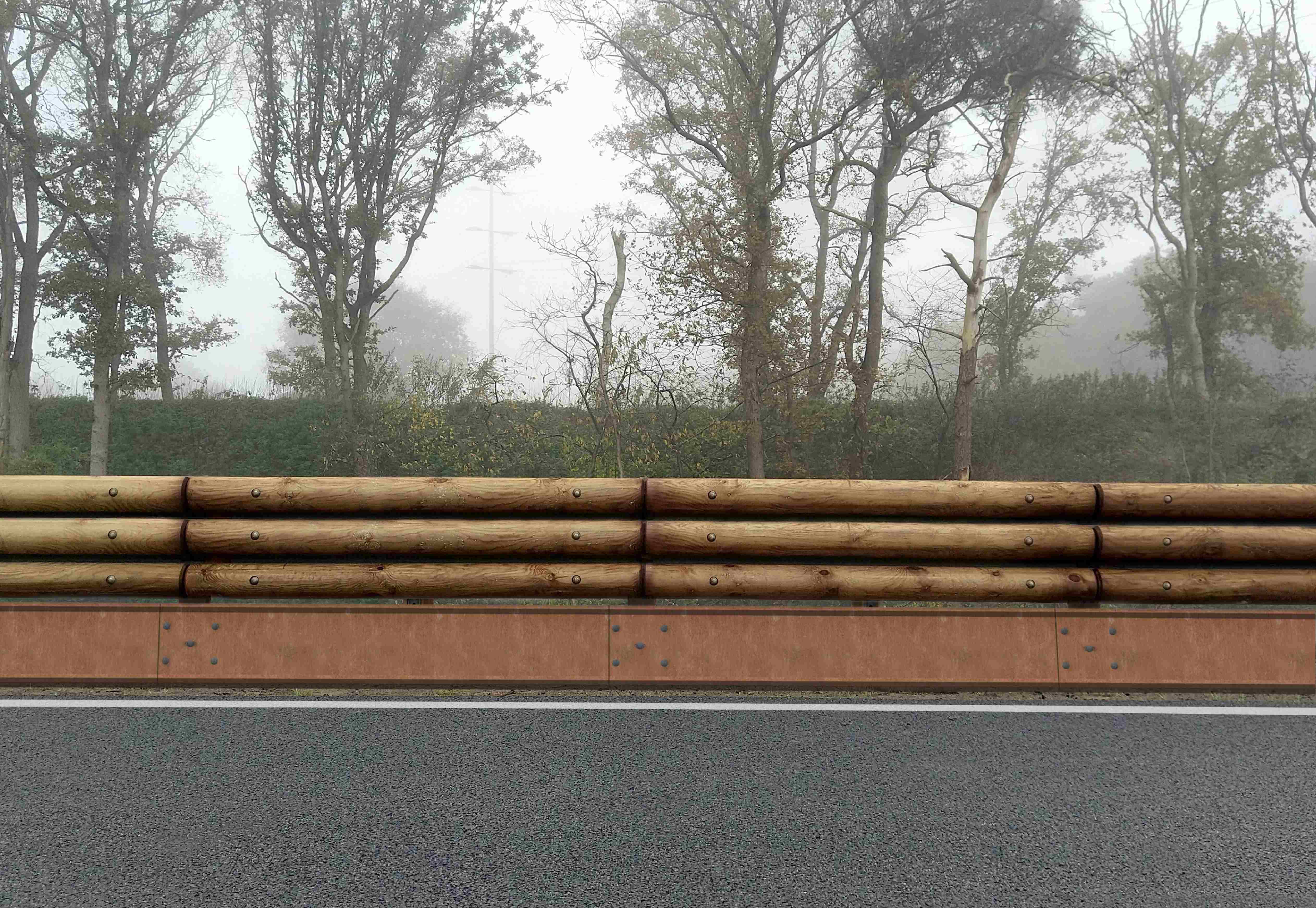 The Vita International Motorcycle Safety Device (DSM) can be applied to the entire range of safety barriers. It is composed of specially shaped Corten® steel support brackets measuring 510x153x120mm and 4mm thick; fixed to the lower part of the barrier and placed between the horizontal belts and the uprights or spacers, depending on the type of barrier to which it is applied. The horizontal band composed of Corten® steel sheets specially shaped to guarantee maximum performance of the device and measuring 2300x370 and 1.5mm thick is then secured to the brackets. The joints between the elements are guaranteed by suitable bolts. 8.8. The DSM protects riders from direct impact with sharp guardrail elements and provides controlled containment and redirection to prevent sliding beneath the barrier.