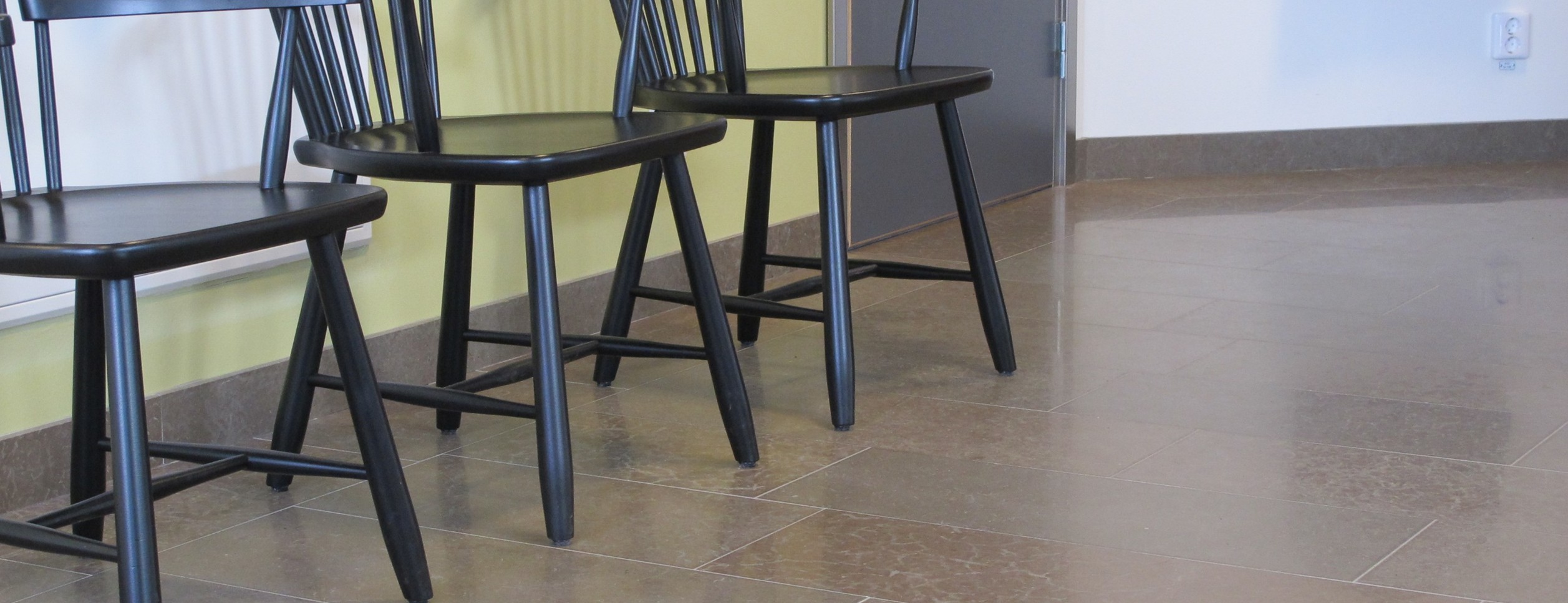 Honed or brushed limestone floor tile according to SS-EN 12057 with long technical lifespan and limited maintenance needs. Classified under UN CPC code 15130 (cut, shaped and finished stone). Various dimensions, most common 300 × random lengths (300–790) mm, thickness 12 mm, density 2.7 t/m³. For indoor applications in both private and public environments such as residential buildings, offices and public spaces. Technical lifetime 50 years, corresponding to the average building lifespan.