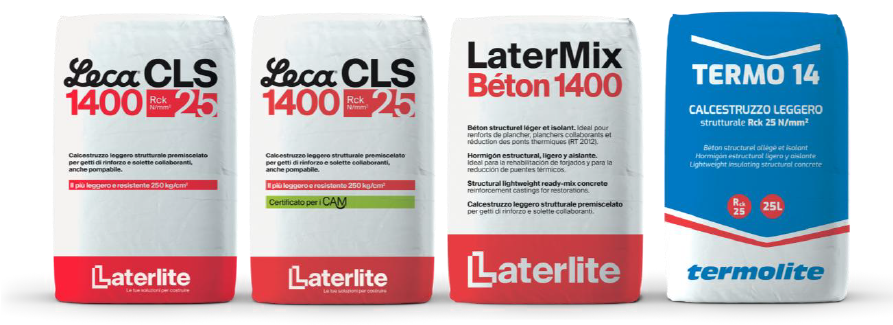 In the hardened state, the concretes typically have a density of about 1,400 kg/m³, a characteristic compressive strength of approximately 25 MPa, and mechanical performance suitable for lightweight structural applications. Compared to traditional concrete, they allow a significant reduction in in-place mass. Some formulations also provide lower thermal conductivity due to the presence of expanded clay aggregates. They are characterized by non-combustibility (Euroclass A1).