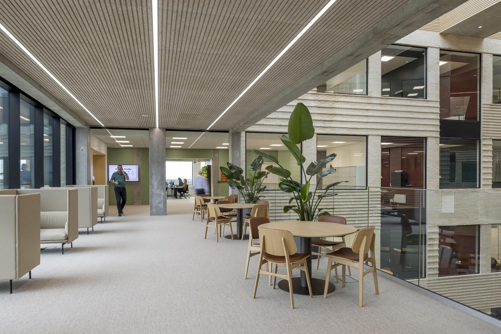 Troldtekt® acoustic panels for ceiling and wall cladding help to ensure a pleasant atmosphere where it is possible to have conversations.