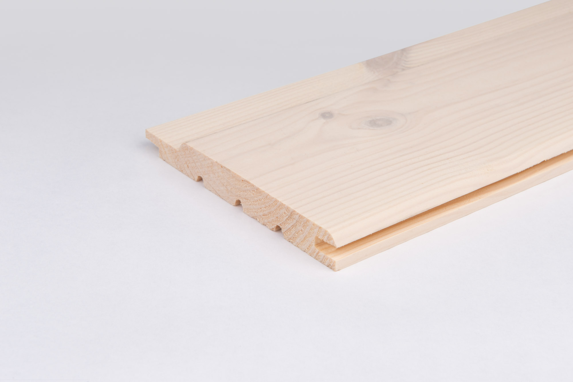 Interior panel produced from planed pine. The panels are manufactured in various qualities and profiles according to specification. The panel is finished with a waterborne white-pigmented wax that lightens the panel and provides an easy-to-clean surface. The finished products are packaged using PET straps, battens and a protective plastic hood. The moisture ratio of the declared product is 13% on average, not exceeding 15%.
