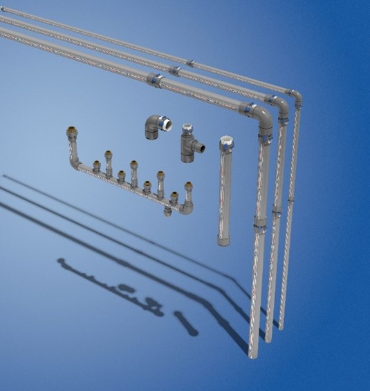 A PPR CT RP supply system for a vareity of applications including water distribution: boosted cold water, LTHW, chilled water and heating.