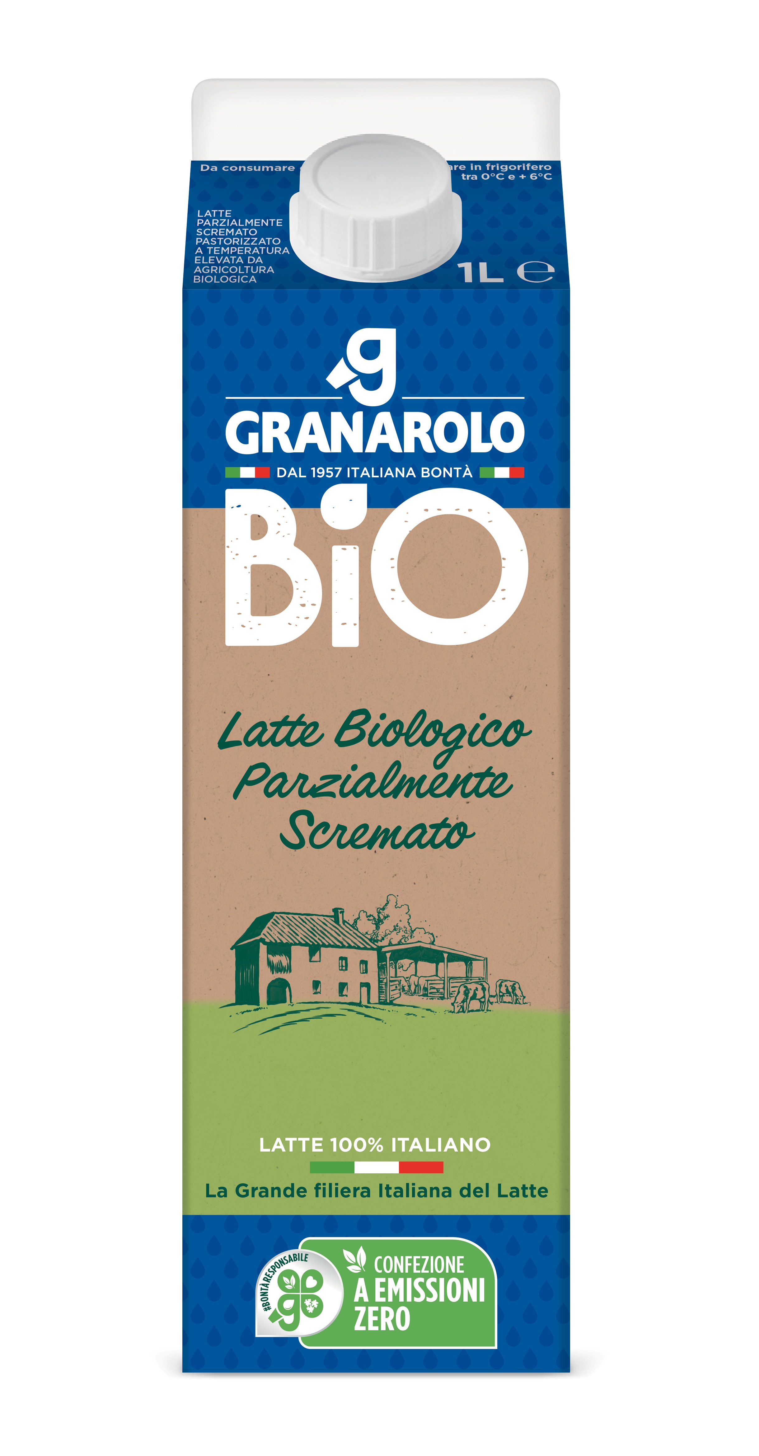 Granarolo organic semi-skimmed milk is pasteurized at high temperature (ESL) and packed in 1-liter Tetra Rex® Bio-based packaging, produced exclusively with plant origin raw materials. The cardboard used comes from certified sources, FSC controlled, traceable up to origins. The low-density polyethylene used to make the laminated film covering the cardboard, the neck of the opening and the cap, comes from the sugar cane.