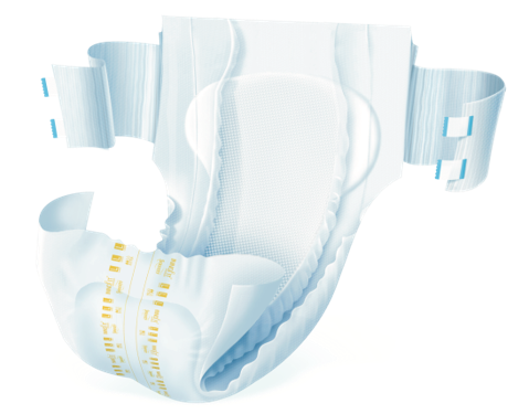 The particular waist closure system is composed by two soft nonwoven wings in stretch fabric that are perfect to fit the body shape and provide great freedom in movement.