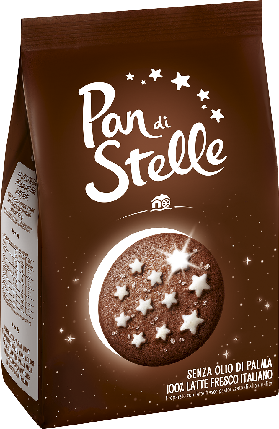 Pan di Stelle are Italian biscuits with cocoa, hazelnut and high quality fresh milk. Pan di Stelle are produced in the two Italian bakery plants of Castiglione delle Stiviere (MN) and Melfi (PZ). They are packed in 350, 700 and 1000 grams formats and are ready for the consumption. For more information about the product see https://www.pandistelle.it/prodotti/biscotto.