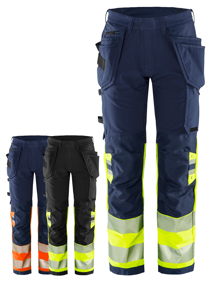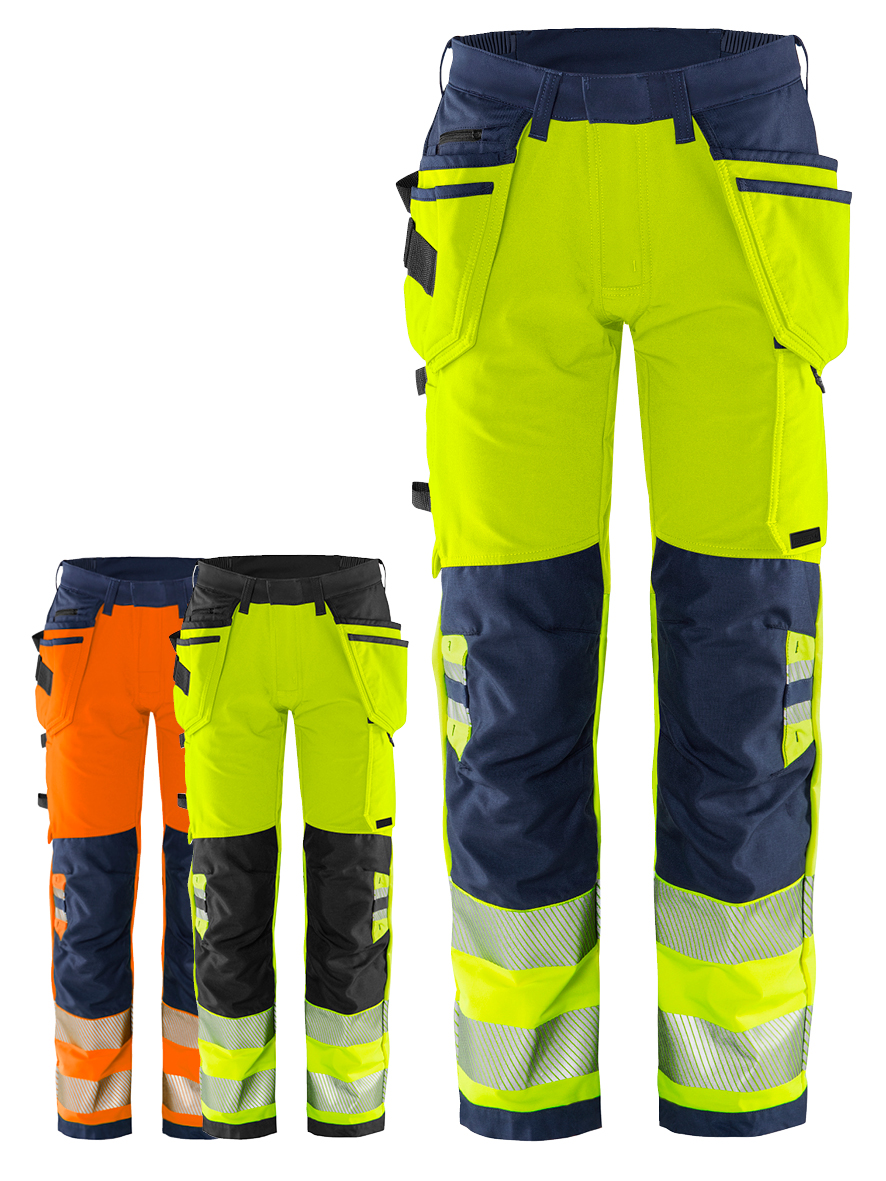 Sustainable high-vis craftsman stretch trousers with an EPD (Environmental Product Declaration). Made of recycled polyester and bio-based material in a durable lightweight material. Full 4-way stretch with extra stretch panels at the waist for superior comfort and reinforced in exposed areas. The entire manufacturing chain is characterised by environmental awareness and innovative solutions to minimise the environmental footprint. Part of the Fristads Green High-vis collection spring 2022.