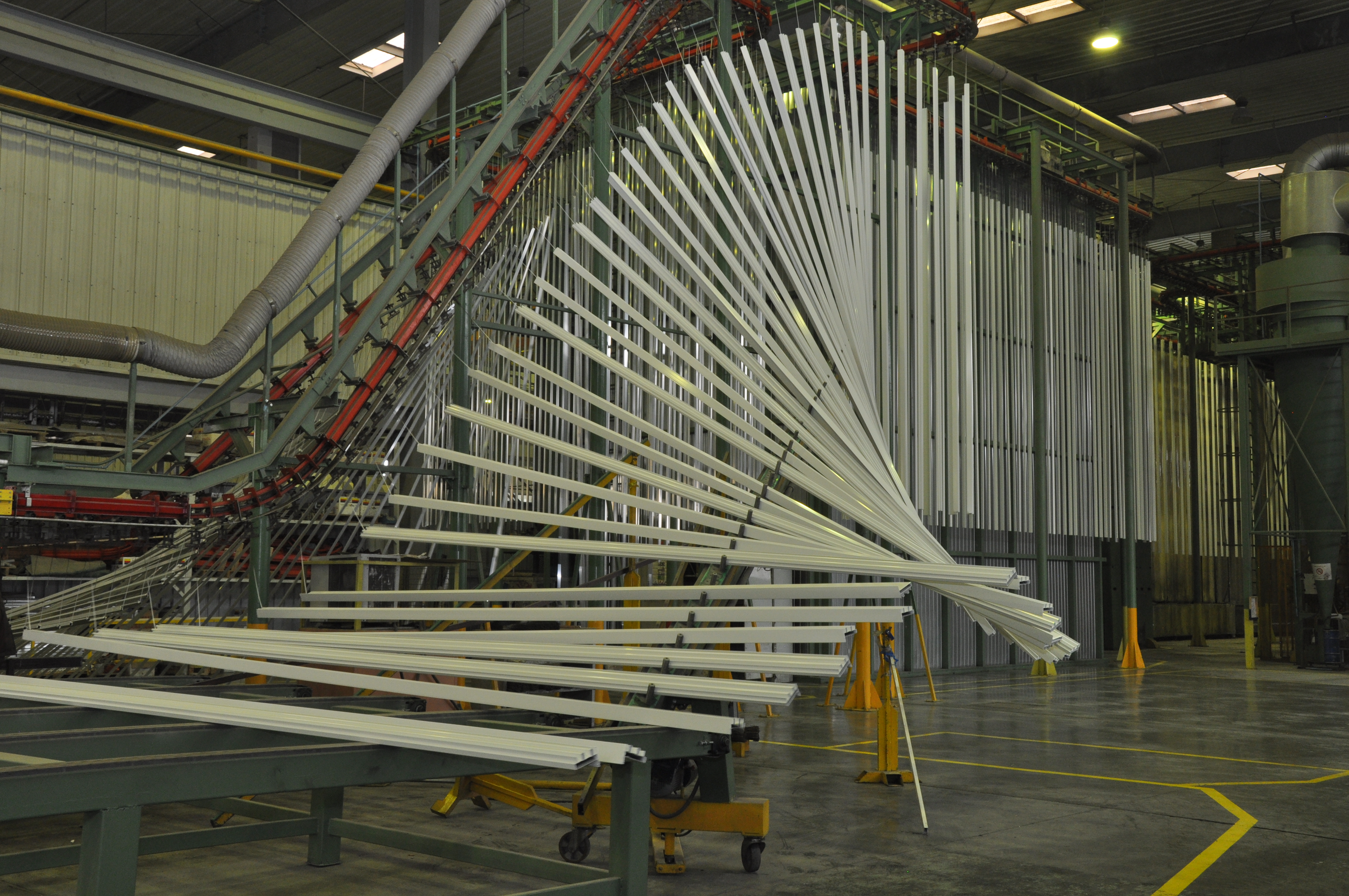 The standard length is 7.00 m, however, the lines can be processed upon request with a premium up to 9.5 m length. The powder coating lines are capable of processing polyester powder, super durable powder, hyper durable kynar, metallic finishes. The production capacity is over 40,000 metric tonnes per annum.