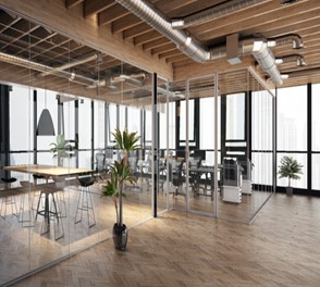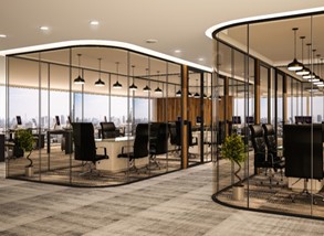 Kwentha 54 (Double Glaze) Kwentha 54 (Double Glaze) series is a demountable office partition system is pure in design with multiple options. Key features • Standard track section 54mm x 25mm • Suitable for 10mm/12mm toughened glass & 10.52mm/11.52mm/12.52mm laminated glass. • Partition height can be offered up to 3000mm & width of glass panel not more than 1200mm. • Double glazed systems • Sound insulation capacity of 46-49 dB • Ready Available Finish: Silver Anodized & Black Anodized • Brooklyn option is available