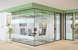 DOTLINE 25 Dotline 25 series is a demountable office partition system with minimal section visibility & strong acoustic insulation. Key features • Standard track section 25mm x 25mm & 25mm x 40mm • Suitable for 10mm/12mm toughened glass & 10.52mm/ 11.52mm/ 12.52mm/ 13.52mm laminated glass. • Partition height can be offered up to 3000mm & width of glass panel not more than 1200mm • Single glazed systems • Sound insulation capacity of 32-34 dB • Ready Available Finish : Silver Anodized & Black Anodized • Brooklyn option available