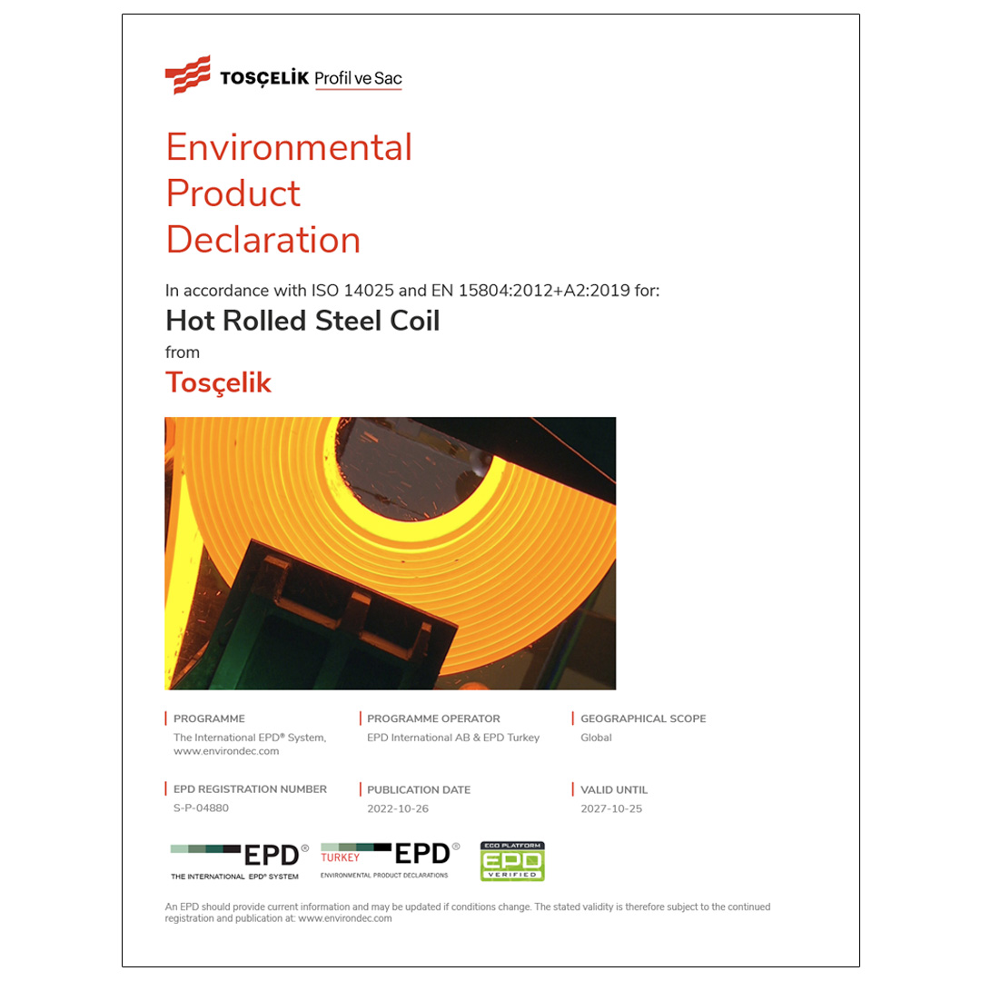 The purpose of the flat rolled process is to turn blocks of heavy steel from continuous casting into usable sheets or coils. Contrary to the hollow rolls used in the production of structural steels and profiles, round rolls with very smooth surfaces are used in flat rolled product rolling. Because the products are thin and wide, they are called flat products. Hot rolling is the process of hot forming of slabs heated to rolling temperature by rolling. The facility where this process is carried out in TOSÇELİK is the Hot Rolling Mill. TOSÇELİK Hot Rolling Mill has a capacity of 2.000.000 tons/year. In hot rolling, 170 - 210 mm thick slabs are rolled into 1.0 - 10 mm thick, 530 - 1000 mm wide coils. The slabs are first rolled to a thickness of 25 - 35 mm by heating to approximately 1250 degrees. This process, which is done at a temperature of 1100- 1200 degrees, is called pre-rolling, rough rolling. After rough rolling, the material is rolled to its final thickness. This process, which is done in the range of 800-1100 degrees, is called strip rolling. Before the strip material is wound into a coil, it is cooled with water up to 500-750 C degrees according to the desired mechanical properties.