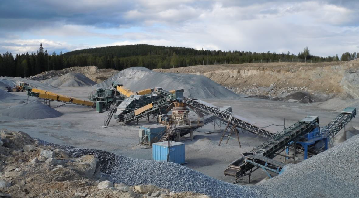 The aggregates declared in this EPD are produced with mobile crushing plants at site Bjurholm owned by NCC Industry AB in Umeå, Sweden. The aggregates declared in the EPD mainly consist of granite and are produced in various fractions; from blasted rock to finely crushed 0/4 mm material used for e.g. filling material in civil engineering and construction projects and as bulk material in concrete and asphalt.