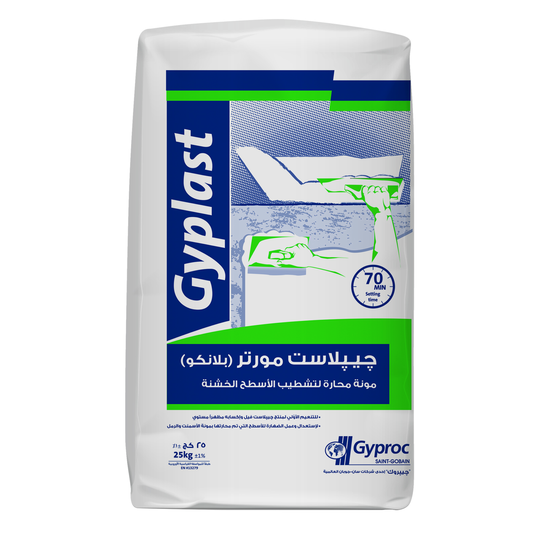 “Gyplast Mortar”, is a thick smoothing plaster for rough substrates in the form of whitish powder, ready for manual application after the addition of the specific amount of water. It’s mechanically mixed and automatically packed with constant tested ratios, composed from primary raw materials and high quality additives enhancing the product performance. Natural elements compose more than 98% from the total weight. After adding the right portion of clean water, it gives a homogeneous mortar ready for application without adding any additives. This is product has the ability to act as a first thick smoothing coat for rough substrates either “Gyplast Fill” or traditional sand & cement plaster to repair it in order to reach the required lining.