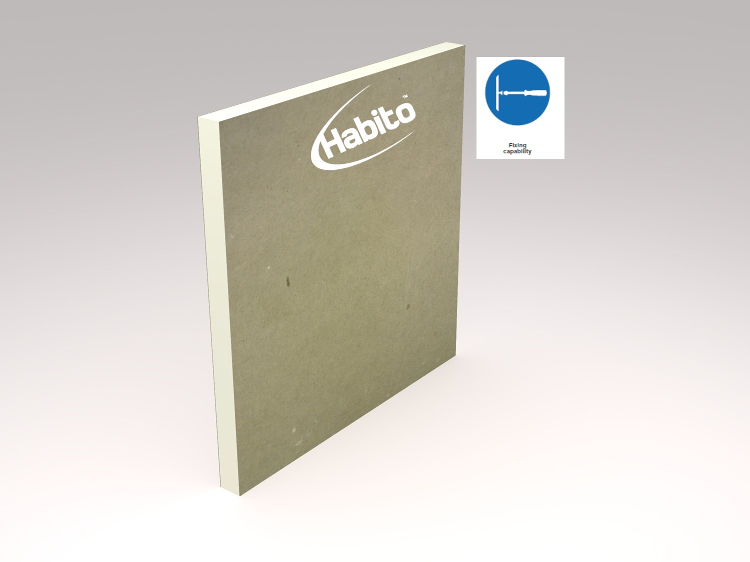 12.5mm Gyproc Habito plasterboard features a high strength engineered core which provides enhanced levels of strength, durability and fixability.