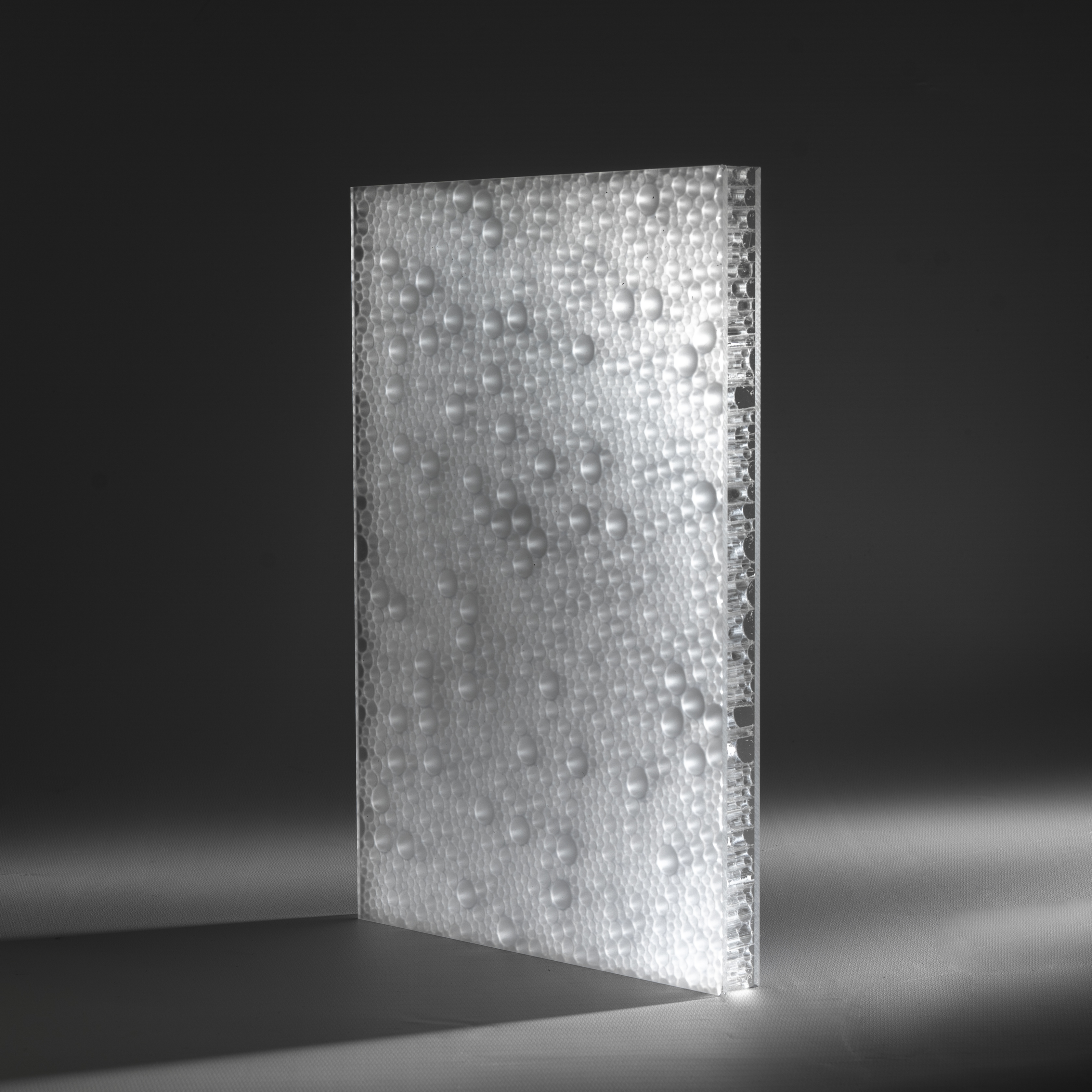 Lightben™ is an ultra-light composite panel produced bonding a core made of Polycarbonate transparent cylinders to external layers in Acrylic, Policarbonate and PETG and in various finishes and several standard colours.
